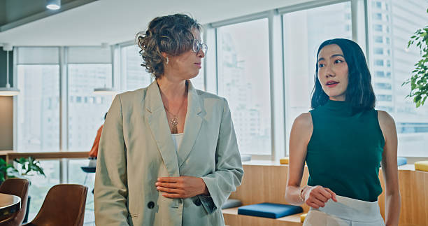 Lyon33 Multiracial group of professionals walking and working together business discussion strategy in office. Sustainable business and finance concept....